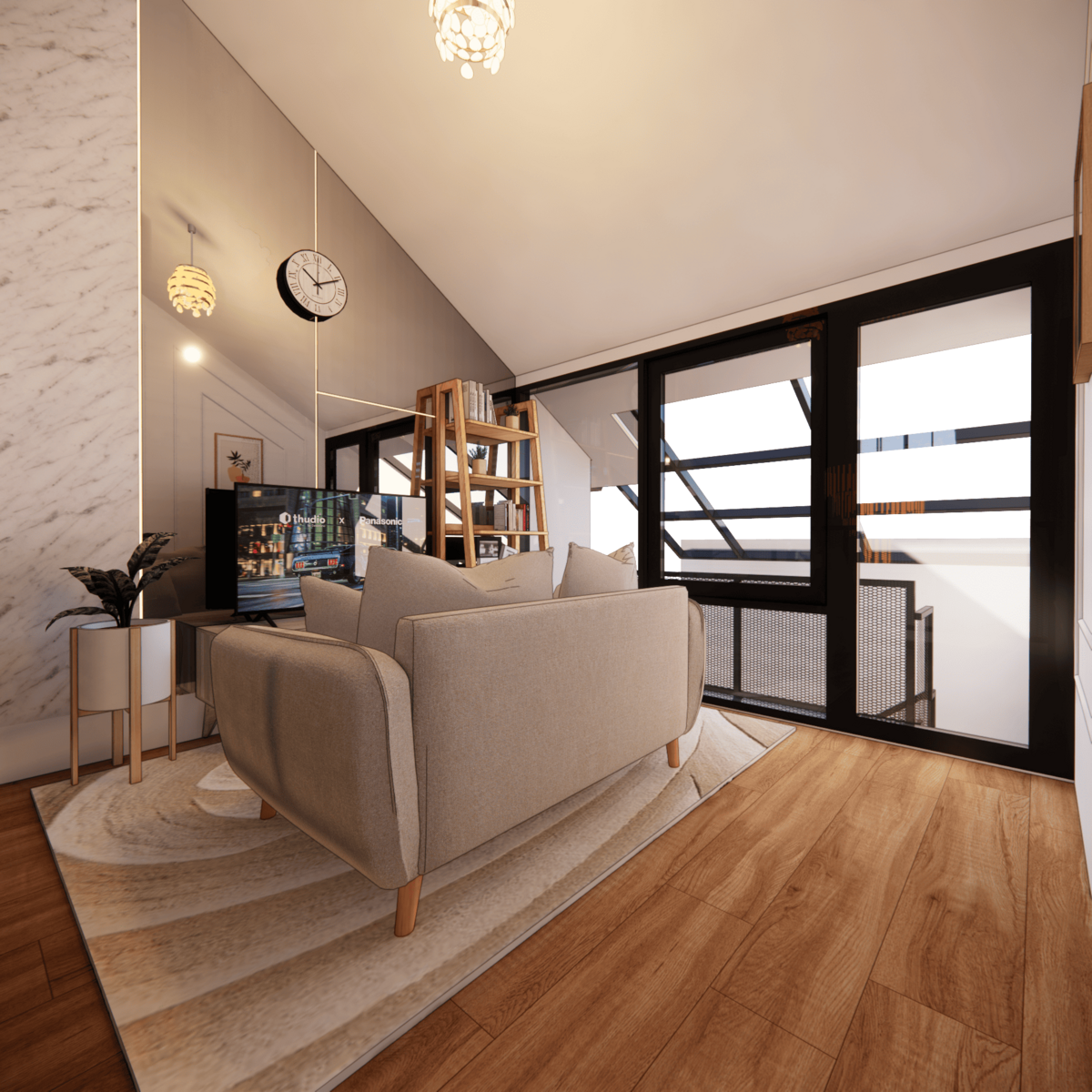 Hunian ini memiliki 2 kamar tidur, ruang keluarga terbuka, dapur yang menyatu dengan area makan, serta pencahayaan alami yang mengalir lembut ke seluruh ruangan. Konsep mezzanine di lantai dua memberikan fleksibilitas tambahan—baik untuk ruang kerja, hobi, maupun area istirahat yang lebih privat.
