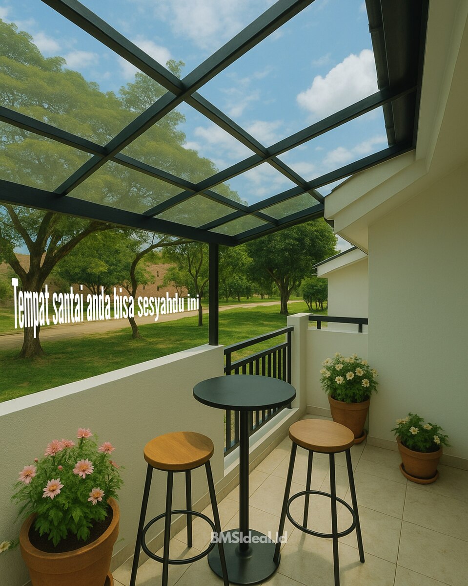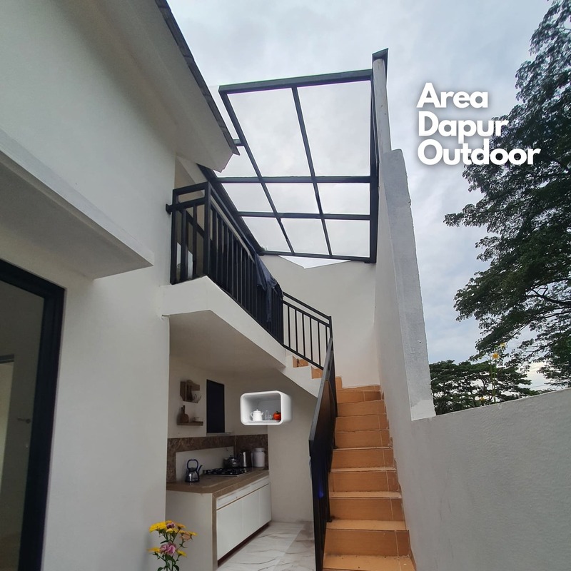 Taman yang mengelilingi tiga sisi rumah menciptakan suasana segar, alami, dan bersahaja, sementara carport, canopy modern, dan sirkulasi udara optimal menjamin kenyamanan jangka panjang.