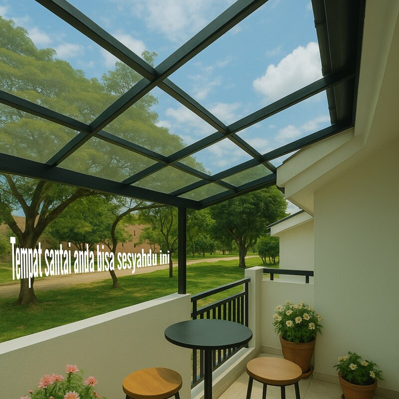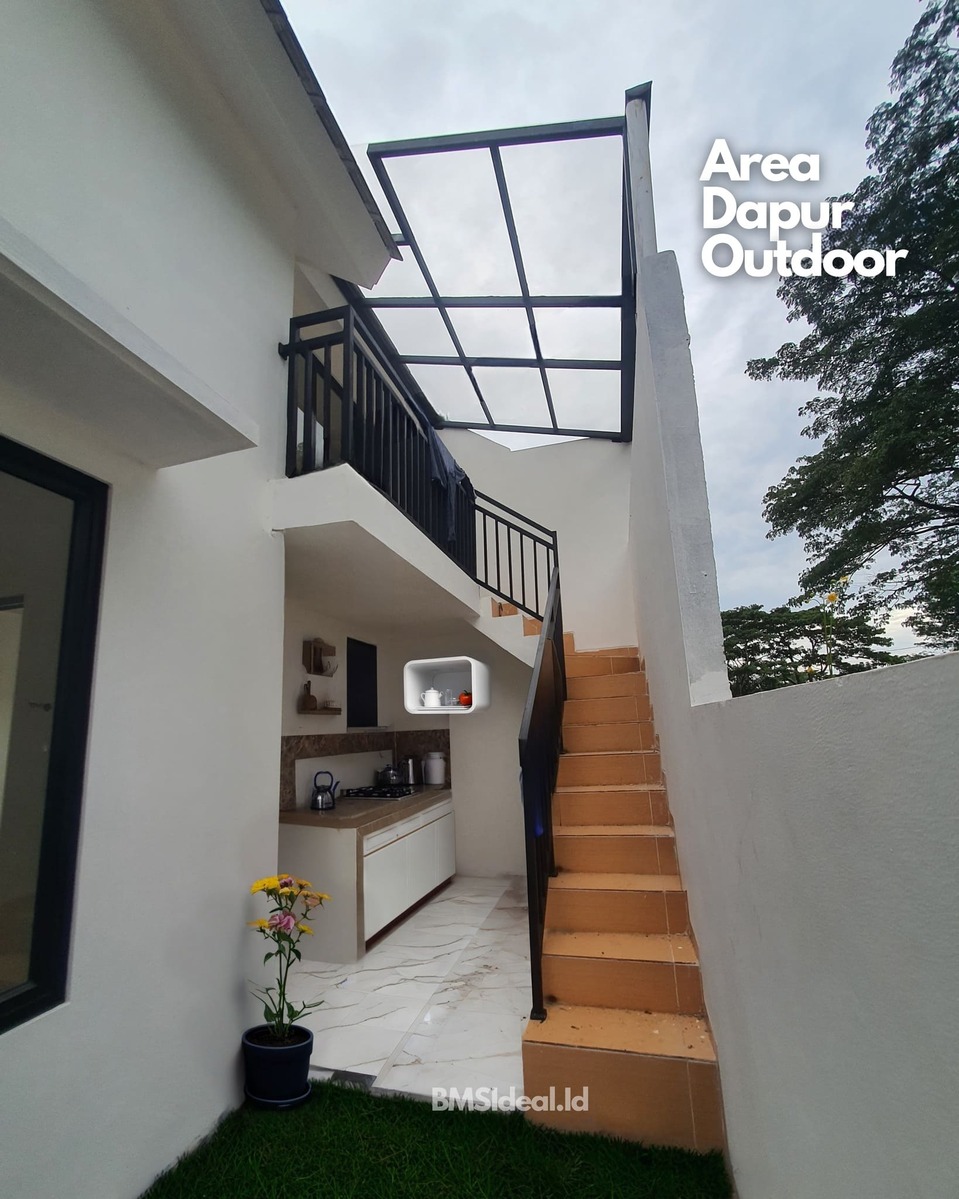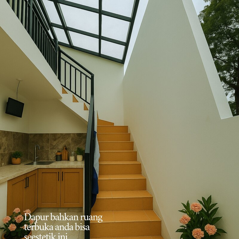 Taman yang mengelilingi tiga sisi rumah menciptakan suasana segar, alami, dan bersahaja, sementara carport, canopy modern, dan sirkulasi udara optimal menjamin kenyamanan jangka panjang.