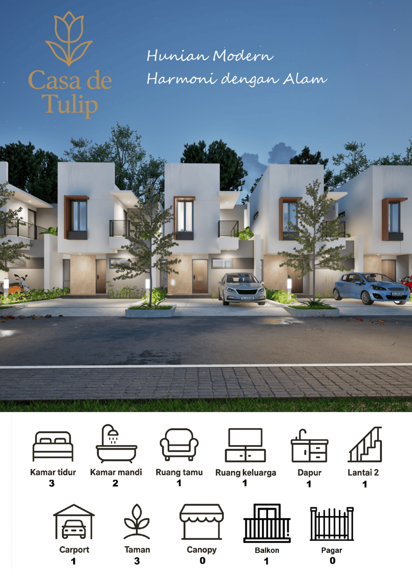 Sebagai sebuah kawasan yang menawarkan keindahan, keseimbangan, dan ketenangan, Cluster Tulip menyediakan berbagai pilihan hunian yang sesuai dengan kebutuhan dan preferensi penghuni.